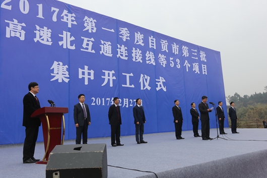 2017年第一季度自貢市第三批高速北互通連接線等53個(gè)項(xiàng)目集中開工儀式